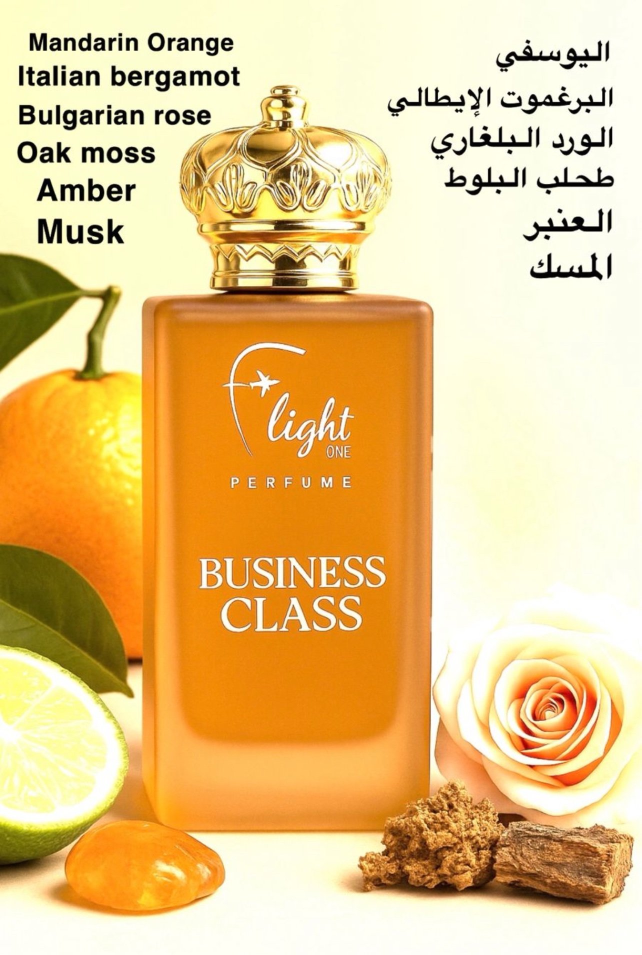 "Business Class Perfume embodies the spirit of modern elegance. It opens with refreshing notes of mandarin and Italian bergamot, followed by a luxurious heart of Bulgarian rose, and settles on a base of oakmoss, amber, and musk. It is the perfect fragrance for those seeking a balance between sophistication and professionalism."